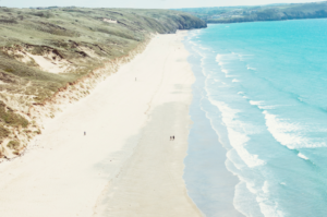 In fact, there’s a ton of mining heritage and history all around, with a handful of buildings perched on the clifftops that were once used in the industry of extracting copper and tin from the rocks around here. The views all around the beach are spectacular, really. One of the best times to visit is in the late summer as the hills that surround the sands are bursting with life and colour thanks to the yellow and purple blankets of heather and gorse that are strewn across the heathland.